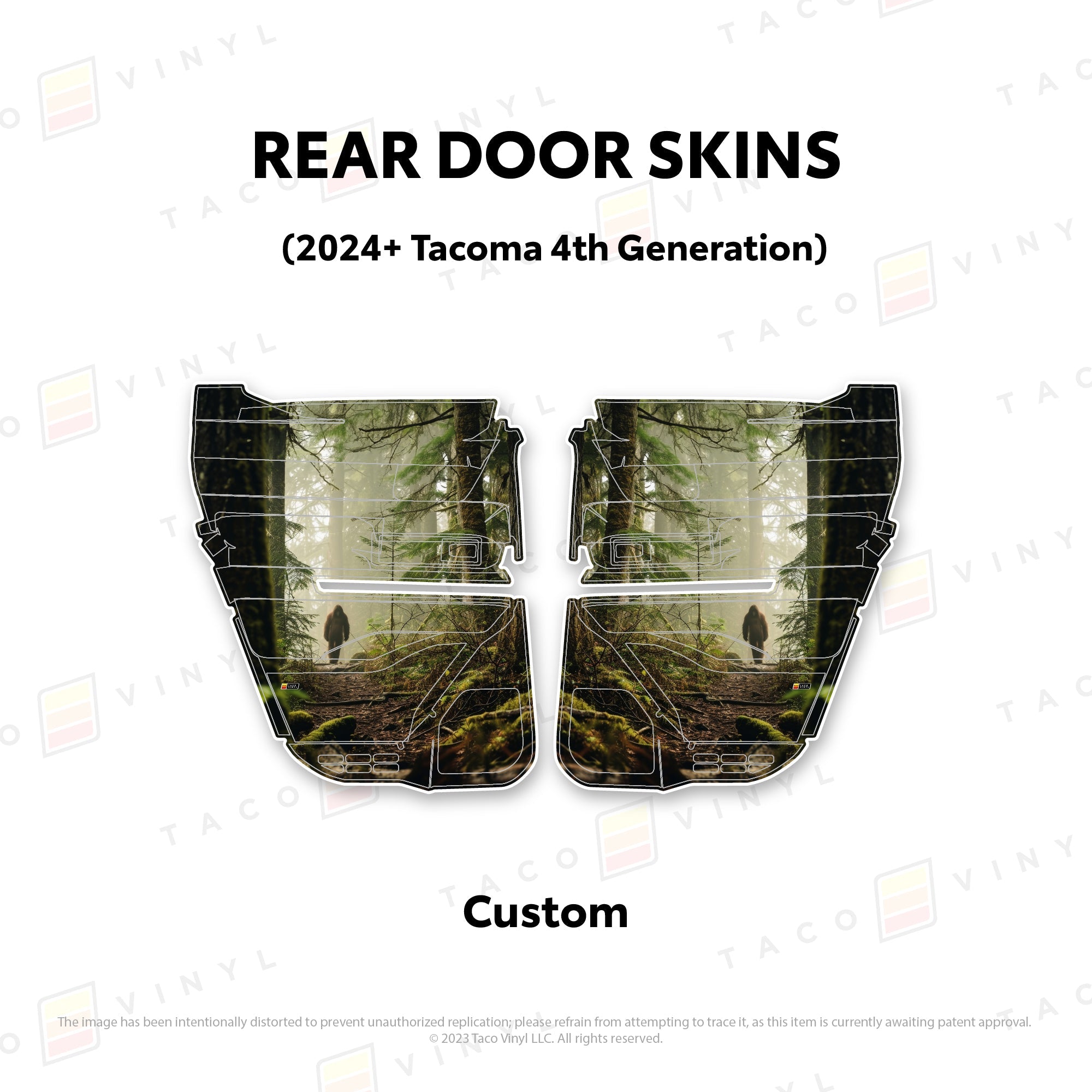 Introducing the pioneering Tacoma Door Skins for your 4th generation truck. Crafted from the highest quality, thickest materials, these skins provide superior protection against boot, tool, pet, and recreational wear and tear. Initially designed for practical purposes, we later realized their potential to enhance the aesthetics of your vehicle as well. Whether you intend to own or lease your truck, our door skins will preserve the door panel's pristine condition and add a touch of style if desired.