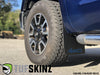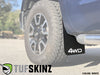 Add a new exterior look to your Toyota Tundra by installing TUFSKINZ Mud Flaps. This kit adds style and protection to your vehicle and is fittingly mounted up to the existing OEM bolts along with our provided hardware.